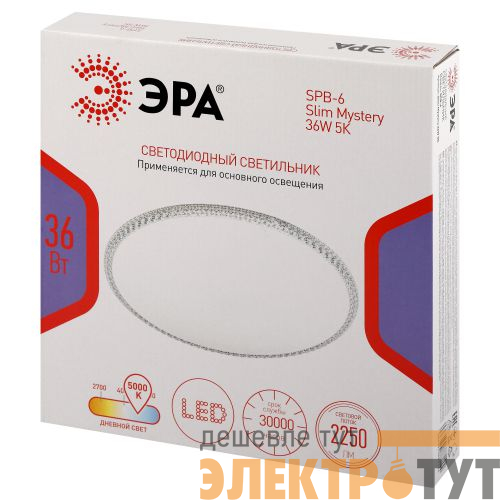 Б0069767 | Светильник светодиодный Классик SPB-6 WH Slim Mystery 36W-5К 36Вт 5000К без ДУ Эра