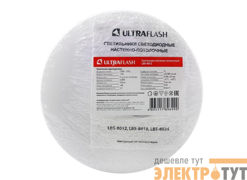 15136 | Светильник светодиодный LBS-8012 12Вт blanc настенно-потолочный Ultraflash