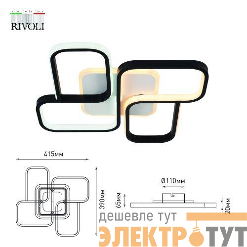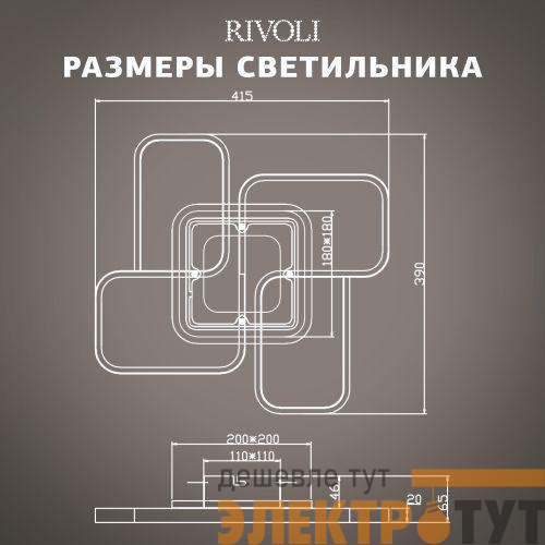 Дизайн люстры светодиодной на потолок Rivoli Lydia 6104-101 LED – квадратный. Бренд Rivoli предлагает аналогичный светодиодный LED-светильник потолочный в круглом дизайне - Rivoli Lori (арт. 6103-101). Светодиодные потолочные люстры Rivoli дают возможность выбирать яркость освещения и цветовую температуру света.