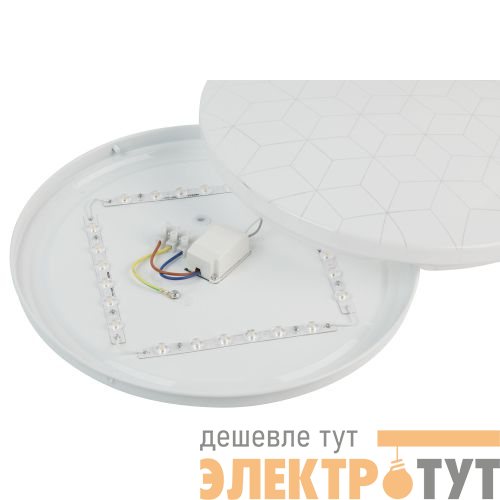 Компактные размеры 325?55 мм позволяют устанавливать светильник даже в помещениях с низкими потолками. Степень защиты IP20 делает его идеальным для сухих интерьеров. Геометрический узор на плафоне мягко подсвечивается при включении, создавая лёгкий декоративный эффект.