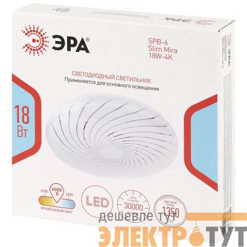 Светодиодный светильник ЭРА SPB-6 Slim Mira 18W-4K — современное и функциональное решение для освещения жилых и коммерческих помещений.