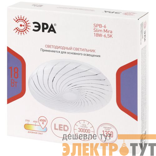 Светодиодный светильник ЭРА SPB-6 Slim Mira 18W-6,5K — современное и функциональное решение для освещения жилых и коммерческих помещений.