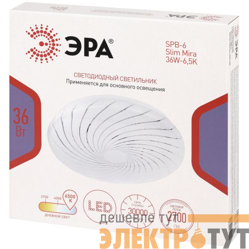 Светодиодный светильник ЭРА SPB-6 Slim Mira 36W-6,5K — современное и функциональное решение для освещения жилых и коммерческих помещений.