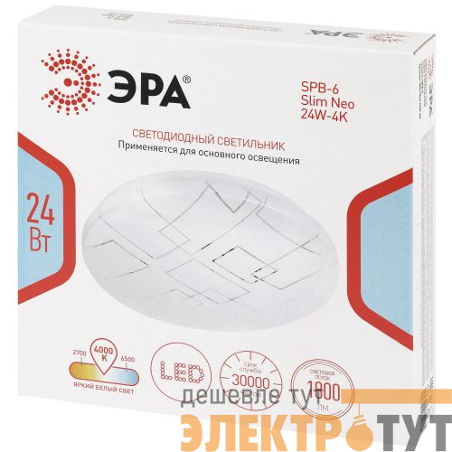 Светодиодный светильник ЭРА SPB-6 Slim Neo 24W-4K — современное и функциональное решение для освещения жилых и коммерческих помещений.