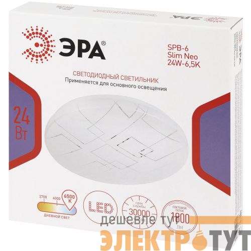 Светодиодный светильник ЭРА SPB-6 Slim Neo 24W-6,5K — современное и функциональное решение для освещения жилых и коммерческих помещений.