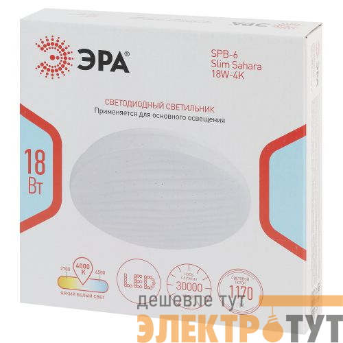 Светодиодный светильник ЭРА SPB-6 Slim Sahara 18W-4K — современное и функциональное решение для освещения жилых и коммерческих помещений.
