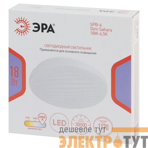 Светодиодный светильник ЭРА SPB-6 Slim Sahara 18W-6,5K — современное и функциональное решение для освещения жилых и коммерческих помещений.