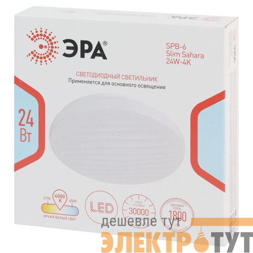 Светодиодный светильник ЭРА SPB-6 Slim Sahara 24W-4K — современное и функциональное решение для освещения жилых и коммерческих помещений.