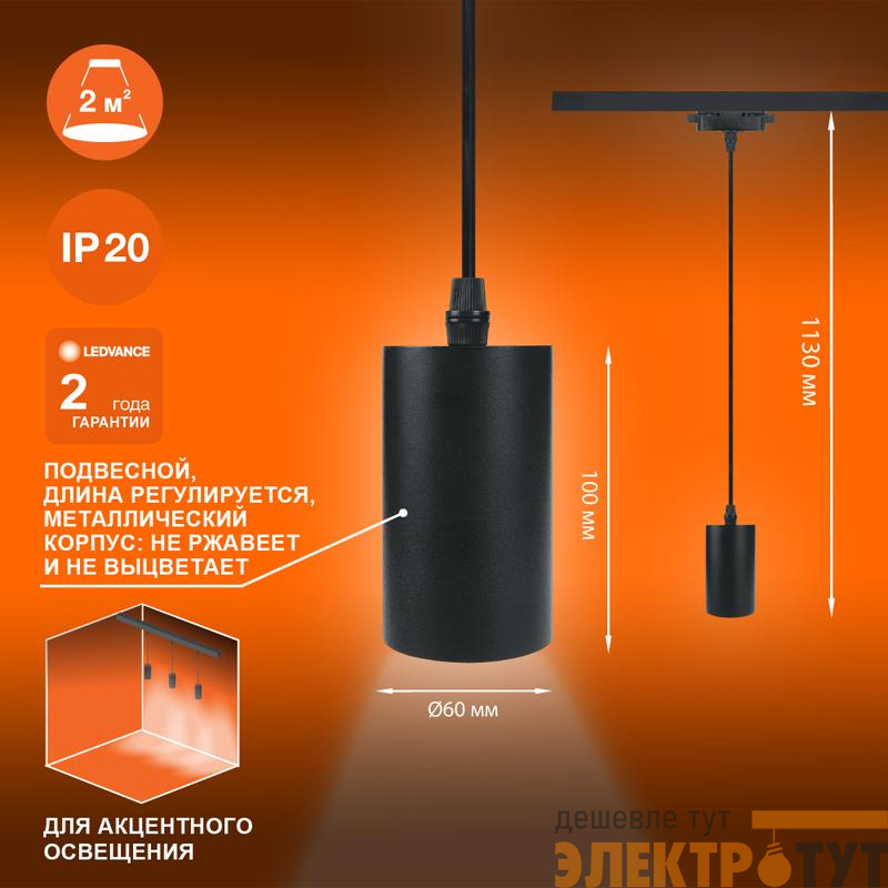 4099854257681 | Светильник светодиодный трековый ECO PENDTRACKSP 1PH GU10 BKRD LEDVANCE