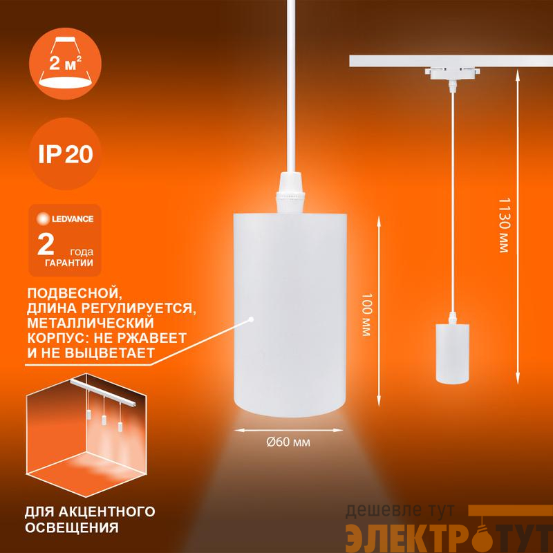 4099854257704 | Светильник светодиодный трековый ECO PENDTRACKSP 1PH GU10 WTRD LEDVANCE