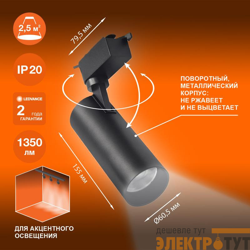 4099854233159 | Светильник светодиодный трековый ECO TRACKSP 1PH 15W 840 BKRD 15Вт 1350Лм 4000К IP20 LEDVANCE