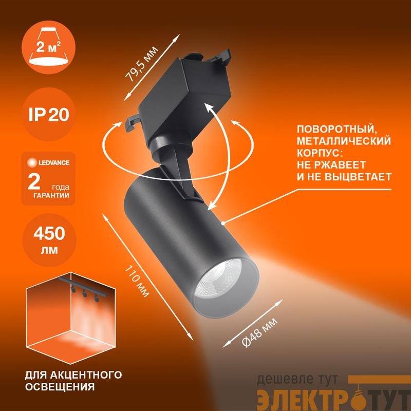 4099854232985 | Светильник светодиодный трековый ECO TRACKSP 1PH 5W 840 BKRD 5Вт 450Лм 4000К IP20 LEDVANCE