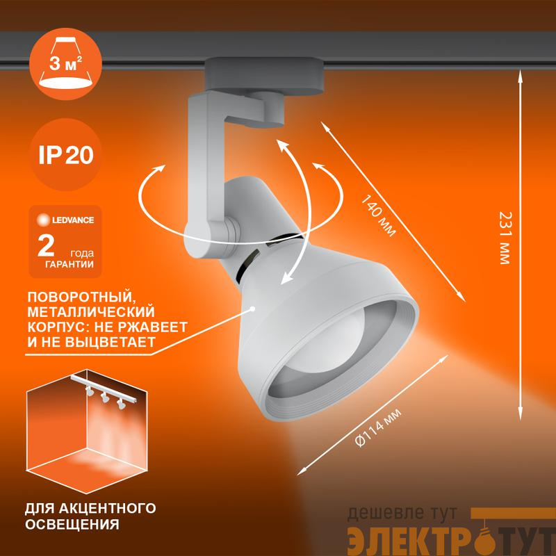 4099854242274 | Светильник светодиодный трековый ECO TRACKSP 1PH E27 WTCONE LEDVANCE