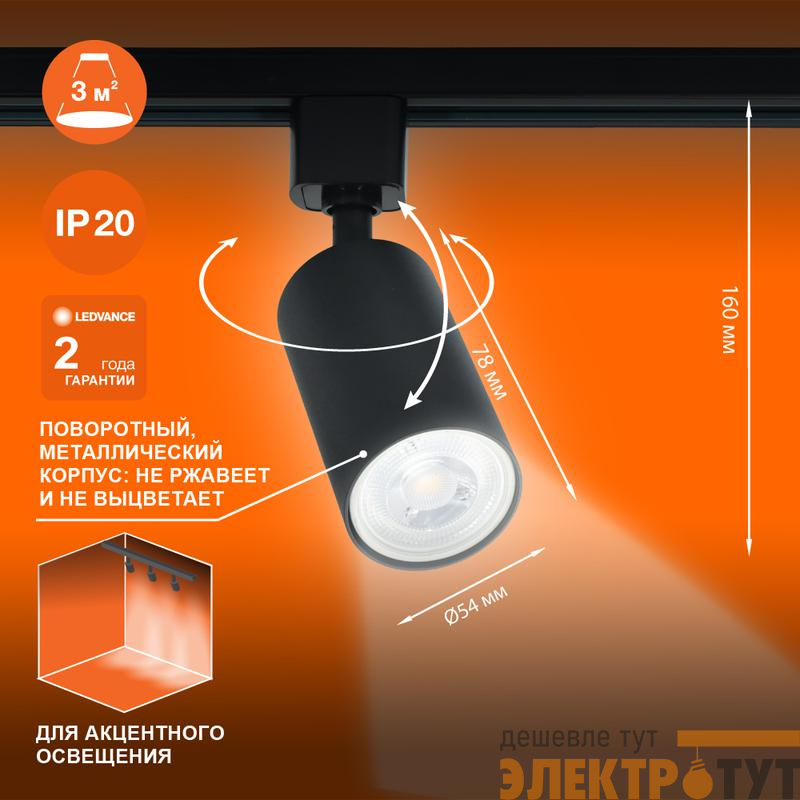 4099854242137 | Светильник светодиодный трековый ECO TRACKSP 1PH GU10 BKRD LEDVANCE