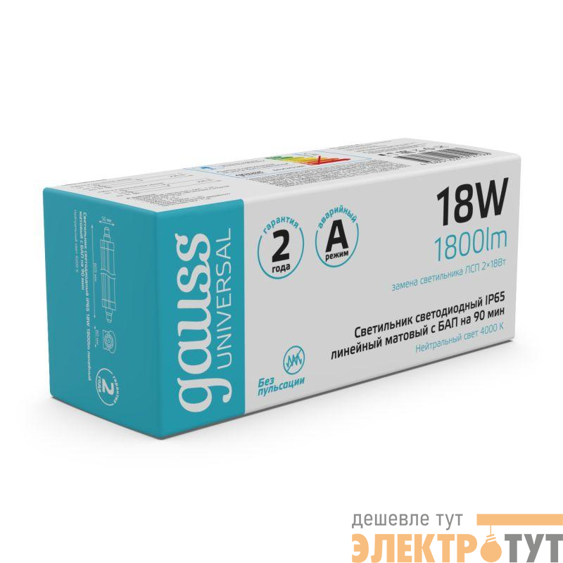 843424218A | Светильник светодиодный Universal 18Вт 4000К IP65 1800лм 605х60х56мм матов. с БАП 90мин GAUSS