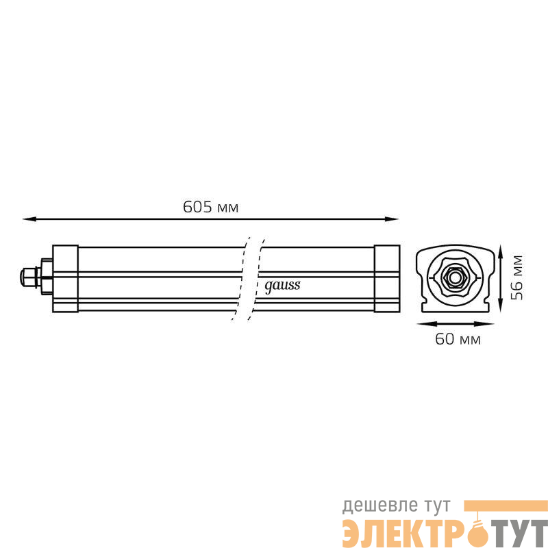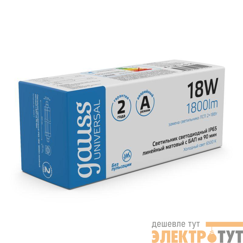 843424318A | Светильник светодиодный Universal 18Вт 6500К IP65 1800лм 605х60х56мм матов. с БАП 90мин GAUSS