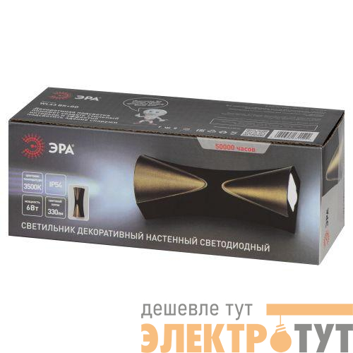 Б0054422 | Светильник светодиодный WL43 BK+GD 6Вт 3500К для интерьера/фасадов IP54 черн./зол. Эра