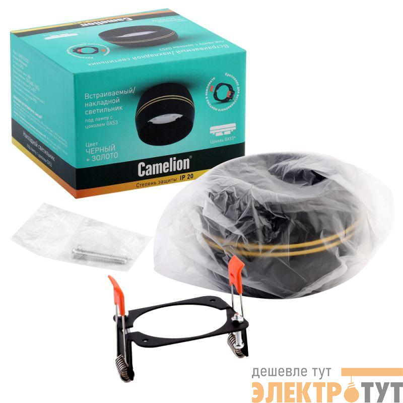 15398 | Светильник встраиваемый IP20 металлический под лампу GX53 LGX53-03 C02 черн. Camelion