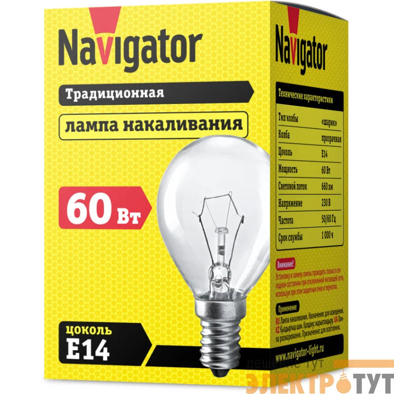 94316 | Лампа накаливания 94 316 NI-C-60-230-E14-CL (КНР) Navigator