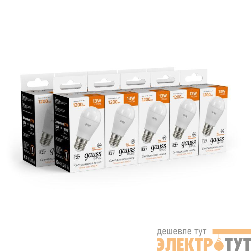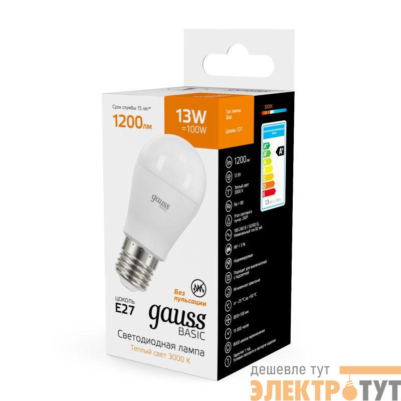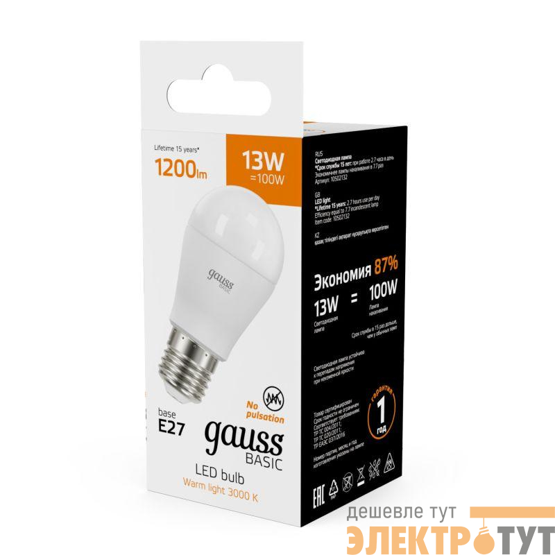 10502132 | Лампа светодиодная Basic 13Вт P45 шар 3000К тепл. бел. E27 1200лм GAUSS
