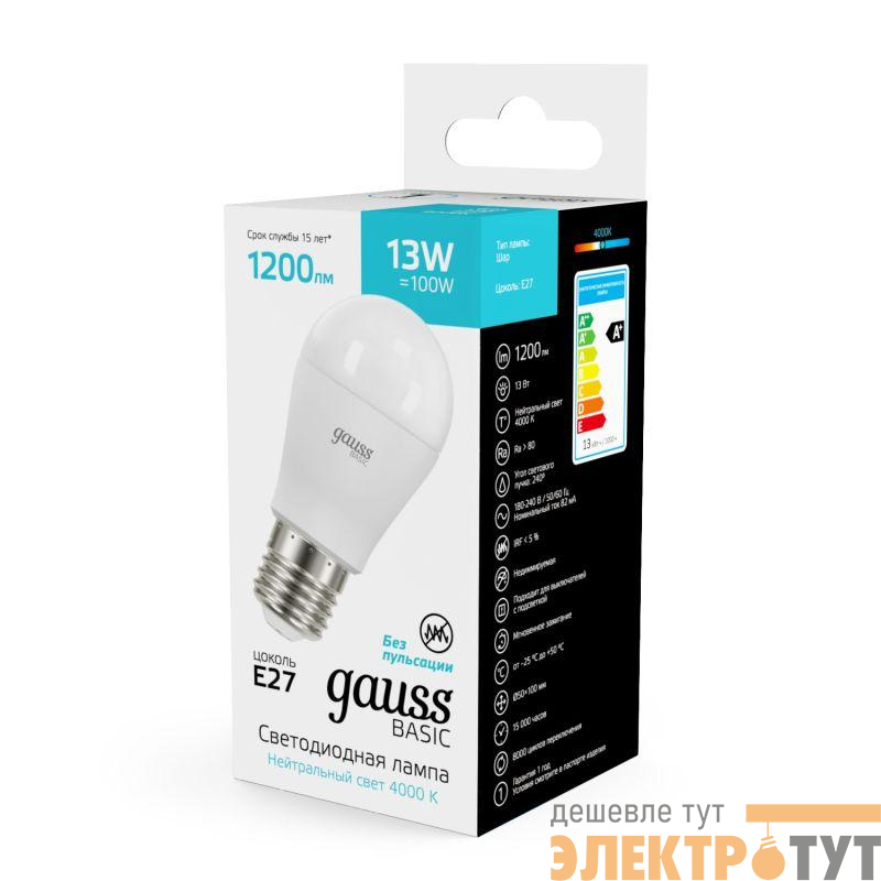 10502232 | Лампа светодиодная Basic 13Вт P45 шар 4000К нейтр. бел. E27 1200лм GAUSS