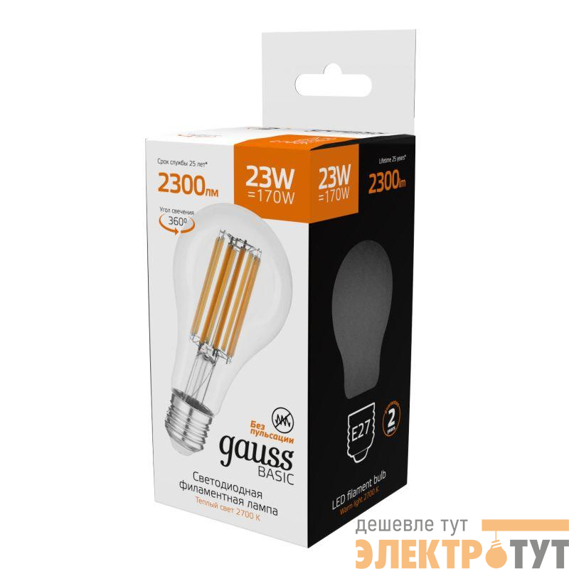 40712132 | Лампа светодиодная филаментная Basic Filament А70 23Вт 2700К Е27 2300лм GAUSS