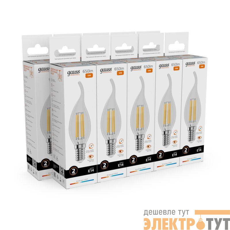 42110 | Лампа светодиодная филаментная Filament Elementary 10Вт свеча на ветру 2700К Е14 650лм GAUSS