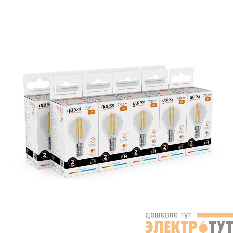 52112 | Лампа светодиодная филаментная Filament Elementary 12Вт шар 2700К Е14 730лм GAUSS