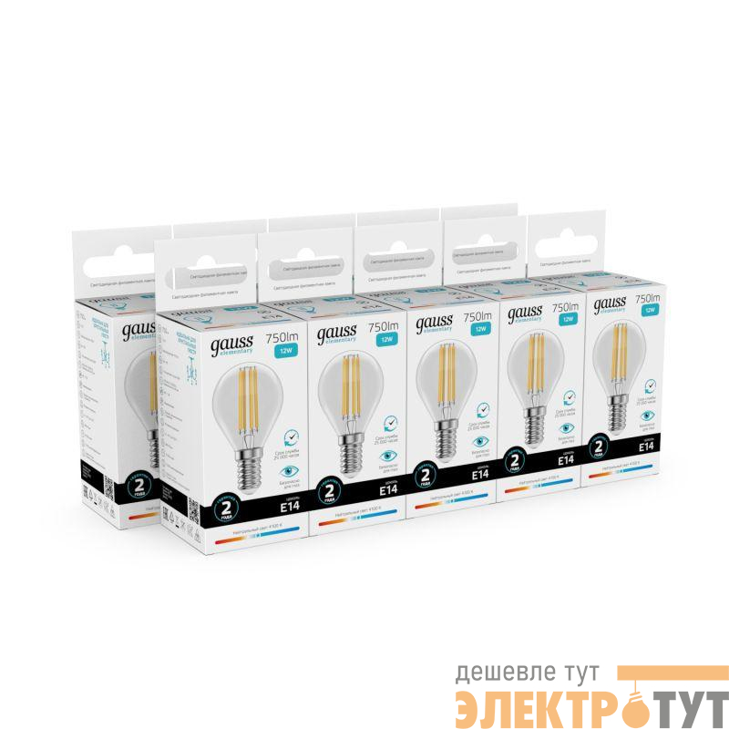 52122 | Лампа светодиодная филаментная Filament Elementary 12Вт шар 4100К Е14 750лм GAUSS