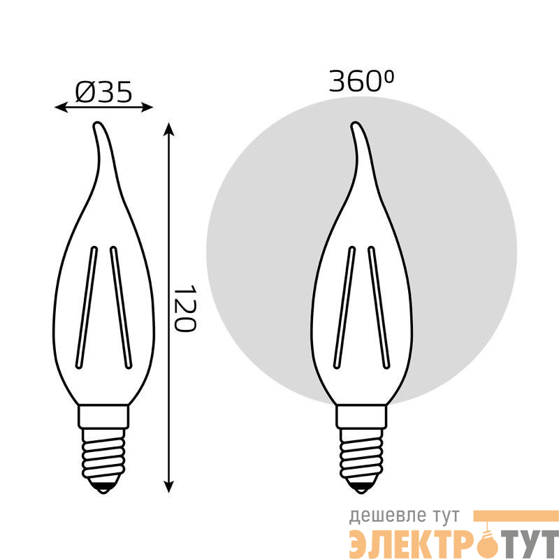 | Форма колбы лампы: | Свеча на ветру |