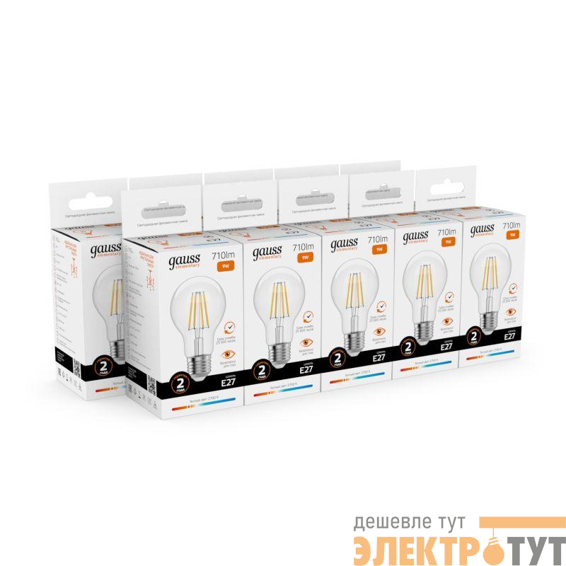 22219 | Лампа светодиодная филаментная Filament Elementary А60 9Вт 2700К Е27 710лм GAUSS