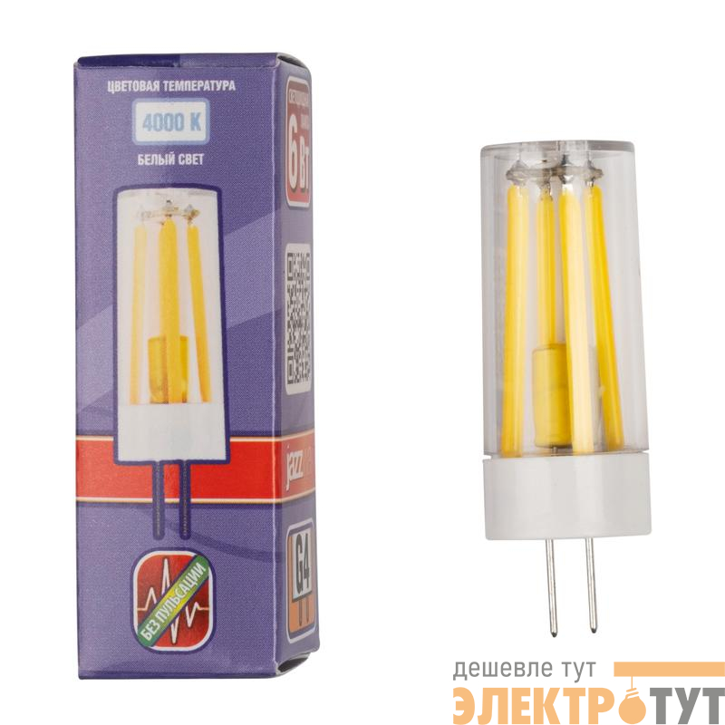 5062467 | Лампа светодиодная филаментная PLED-G4 PRO 6Вт 4000К 480лм 230В d16.5х50мм без пульсации JazzWay