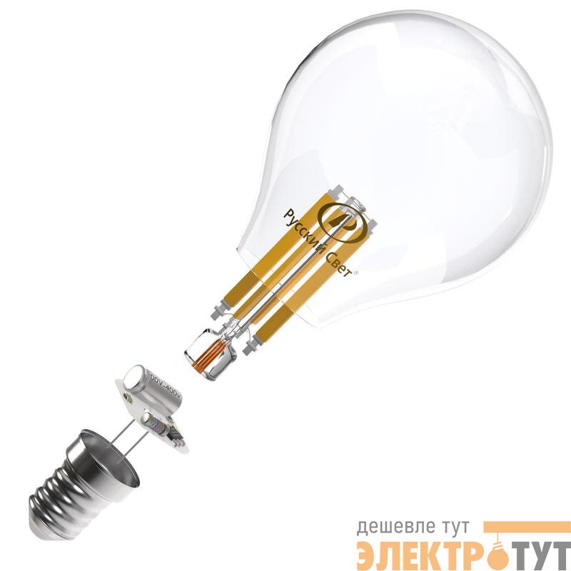 15011245089 | Лампа светодиодная филаментная RS F P45 E14 7W 220-240V 2700К 7Вт 810лм Ra 90 шар Русский Свет