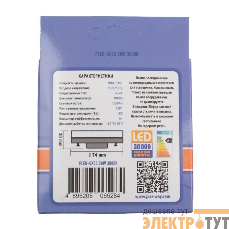 5065284 | Лампа светодиодная PLED-GX53 20Вт 3000К GX53 1630лм JazzWay
