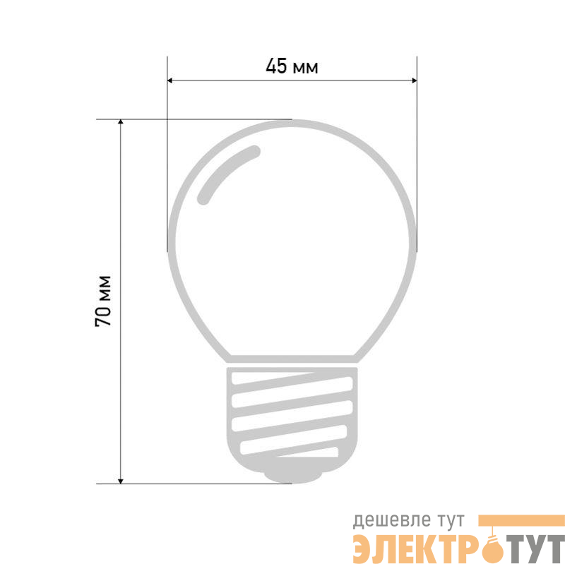 Колба лампы имеет форму шара диаметром 45 мм, что позволяет увеличить площадь свечения и насыщенность светом окружающего пространства.