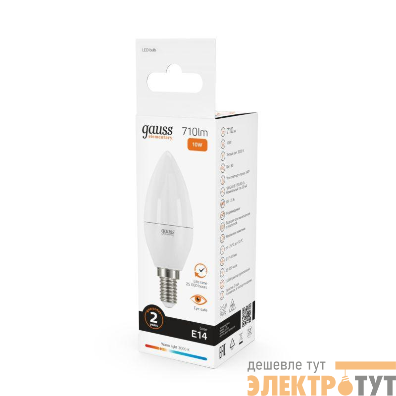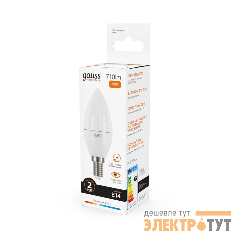 33110 | Лампа светодиодная Elementary 10Вт свеча 3000К тепл. бел. E14 710лм GAUSS