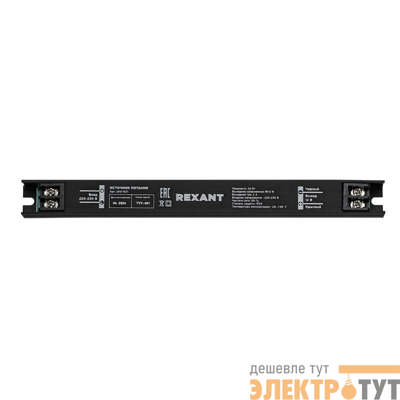 200-1031 | Источник питания (драйвер) 12В 24Вт IP20 с разъемами под винт ультратонкий Rexant