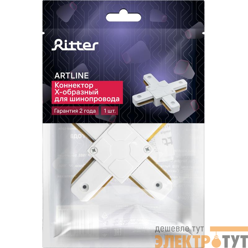 59749 4 | Коннектор трековый для соединения шинопровода Х-образн. жесткий ARTLINE пластик/медь бел. Ritter