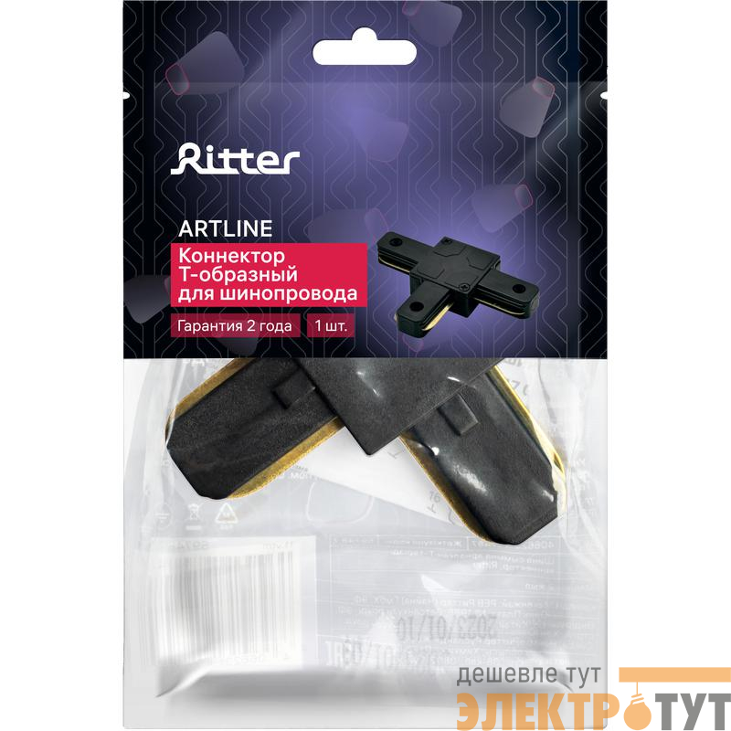 59748 7 | Коннектор трековый для соединения шинопровода Т-образн. жесткий ARTLINE пластик/медь черн. Ritter