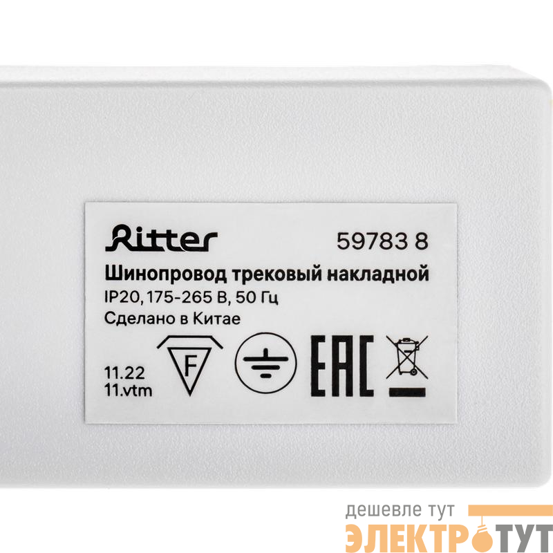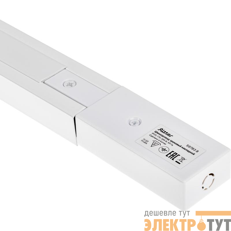 | Шинопровод трековый накладной 1ф ARTLINE с питанием и заглушкой 1м алюм./медь с держателями с пластиковой планкой бел. Ritter 59783 8