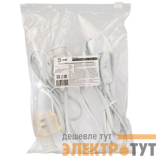 Комплект накидных герметичных патронов для цоколя G13 на лампу Т8. Патрон ЭРА FITO-Holder G13 IP65 mini для светодиодных ламп Т8 длиной до 600 мм, с выключателем и вилкой. Легко подключить лампу T8 и разместить её в любом удобном месте.