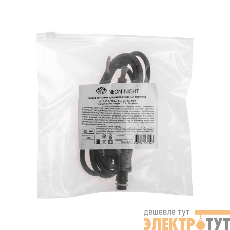 315-003 | Шнур питания для уличных гирлянд (без вилки) 3А провод черн. IP65 Neon-Night