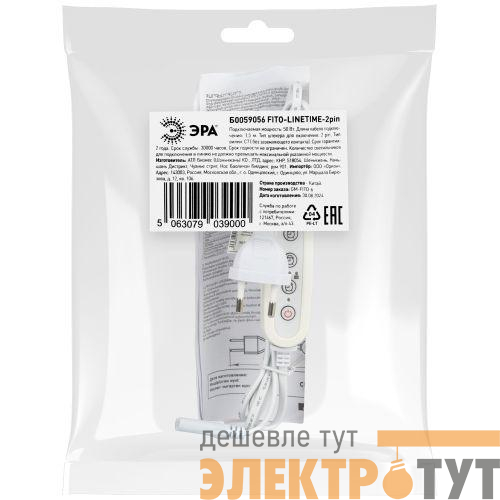Б0059056 | Таймер для фитосветильника FITO-LINETIME (2-pin) с проводом 1.5 м Эра