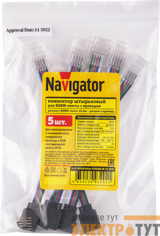 93292 | Коннектор для гибкого соединения RGBW СД ленты 93 292 NLSC-RGBW10mm-PCRGBW-W-PC-IP20 (уп.5шт) NAVIGATOR