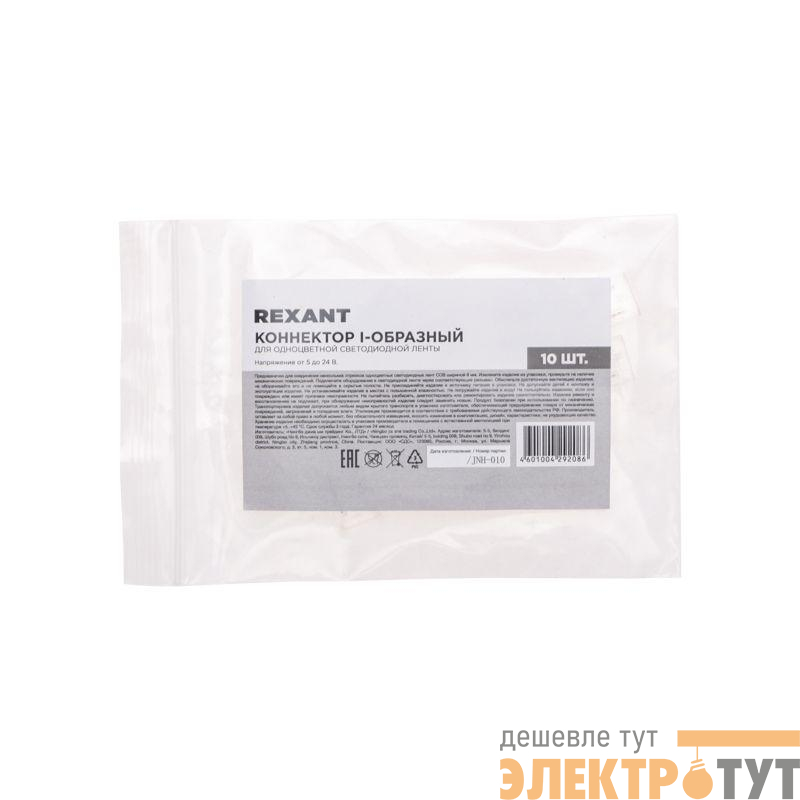 148-102 | Коннектор I-образный для одноцветной светодиодной ленты COB 8мм Rexant