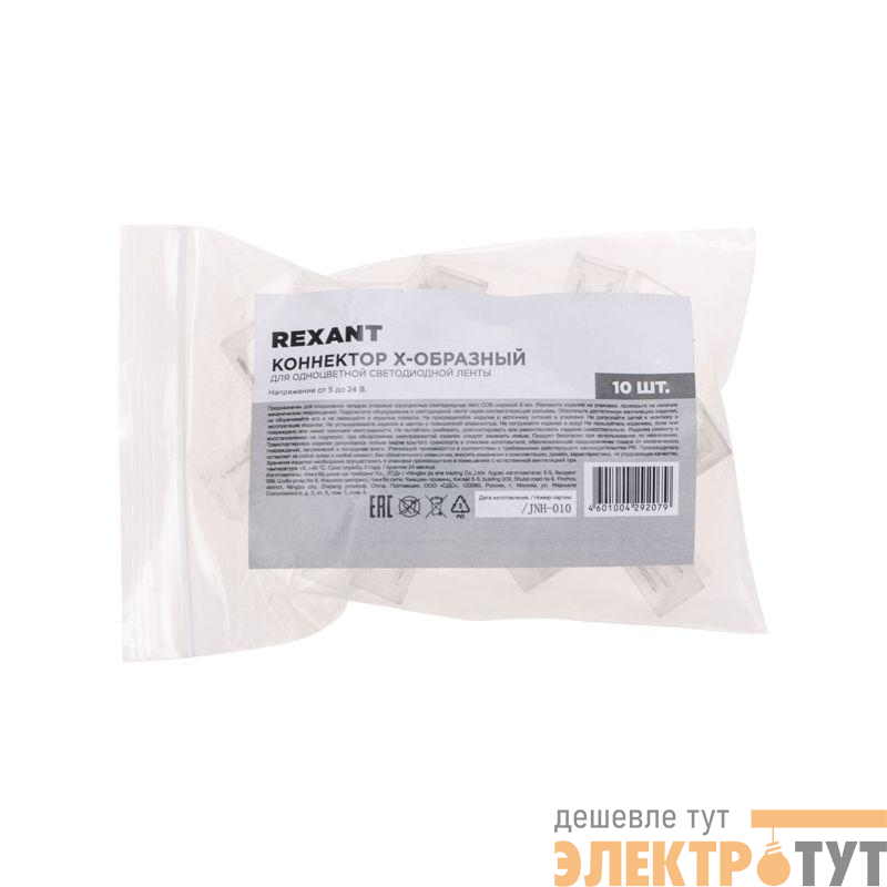 148-112 | Коннектор Х-образный для одноцветной светодиодной ленты СОВ 8мм Rexant