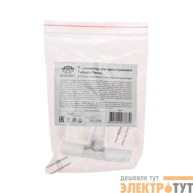 134-060 | Коннектор-T для одностороннего гибкого неона 8х16мм Neon-Night
