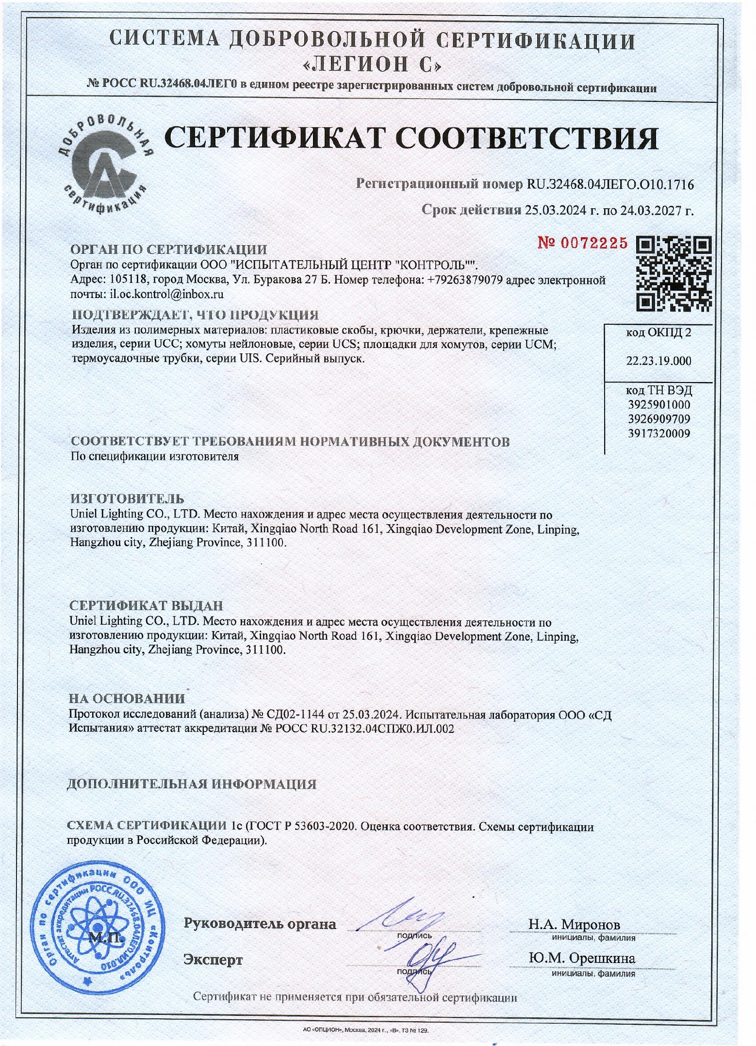 UL-00005798 | Крепление UCC-N22/C50 WHITE 025 POLYBAG для светод. лент ULS-N22 RGB NEON 220В (уп.25шт) Uniel