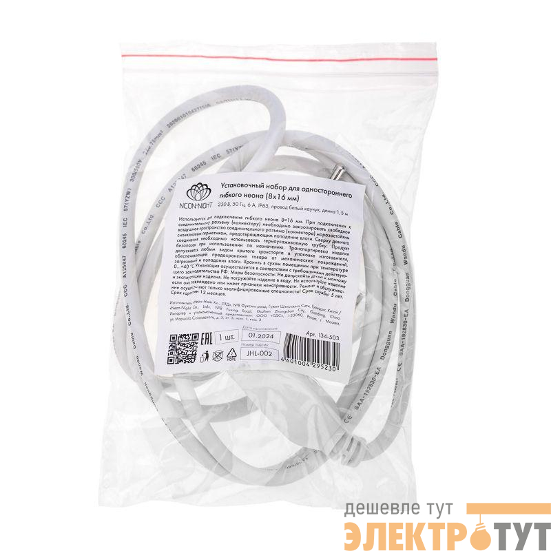 134-503 | Набор установочный для одностороннего гибкого неона 8х16мм (шнур питания каучук с диодным мостом и вилкой заглушка переходная муфта игла) 1.5м Neon-Night