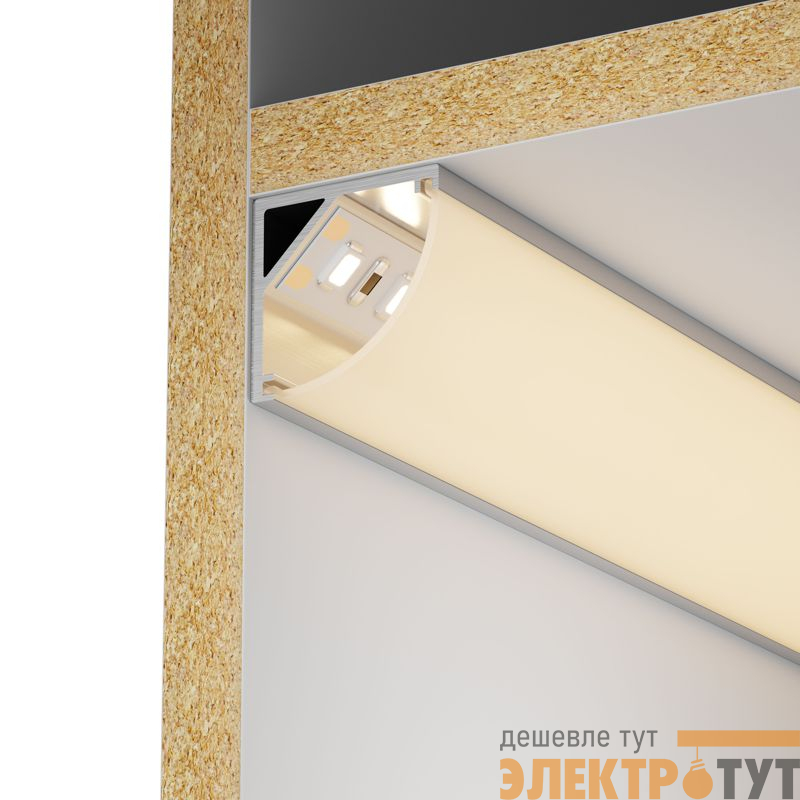 LSADD1616-SET1-2-N3-1-12 | Профиль алюминиевый для LED ленты 1616 накладной угл. опал (дл.2м) компл. аксессуров IEK